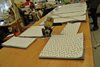 Zaměstnanci Chráněných dílen Charity Opava jsou velmi vynalézaví. Zatímco jaktařské dílny používají ke střihu látky na šití hygienických roušek speciální laser, v dílně ve Vlaštovičkách, kde laser nemají, si zase pomohli speciální pilou. Ta umí z mnoha vrstev látky najednou nařezat až 730 kusů roušek.