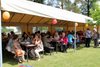 Zahradní slavnost zahájil ve 14 hodin pan ředitel Petr Adamec a poté pronesla svou zdravici paní starostka Monika Brzesková. Následoval kulturní program, ve kterém vystoupili klienti Domova, děti z Mateřské školy Petra z Kravař, pěvecký soubor Fialenka při Základní škole v Kravařích a folklórní soubor Karmašnice. Všechny výstupy byly oceněny potleskem přítomných diváků. K poslechu hráli a zpívali pan Petr Tomíček, paní Alžběta Midrlová a pan Pavel Voch. Pro všechny hosty bylo připraveno tradiční občerstvení - káva, koláče, zákusky, pivo, nealkoholické i alkoholické nápoje, bramborové placky, párky a klobásy. Pro děti byly přichystány různé hry, mohly využít skákací hrad nebo chytat mýdlové bubliny. Pro zájemce byla připravena projížďka kočárem po Kravařích, který táhli dva krásní černí koně.