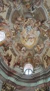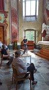 Odhalení zrestaurované stropní fresky v zámecké kapli v Kravařích.